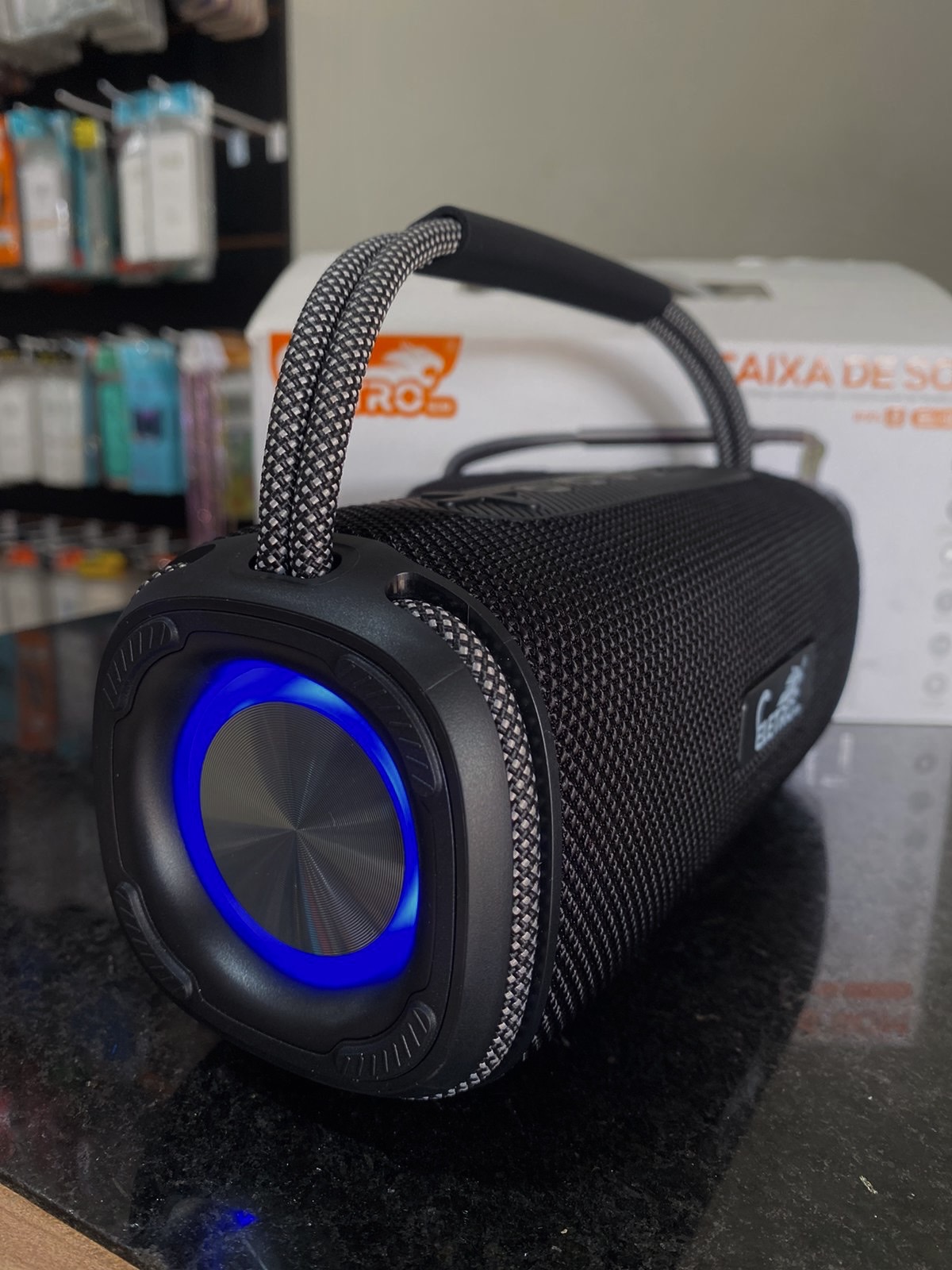 Leve a sua música para onde quiser com essa potente caixa de som portátil de 100W. Com design moderno e resistente, ela oferece som de alta qualidade com graves intensos, perfeita para animar qualquer ambiente, seja em casa, festas ou momentos ao ar livre.