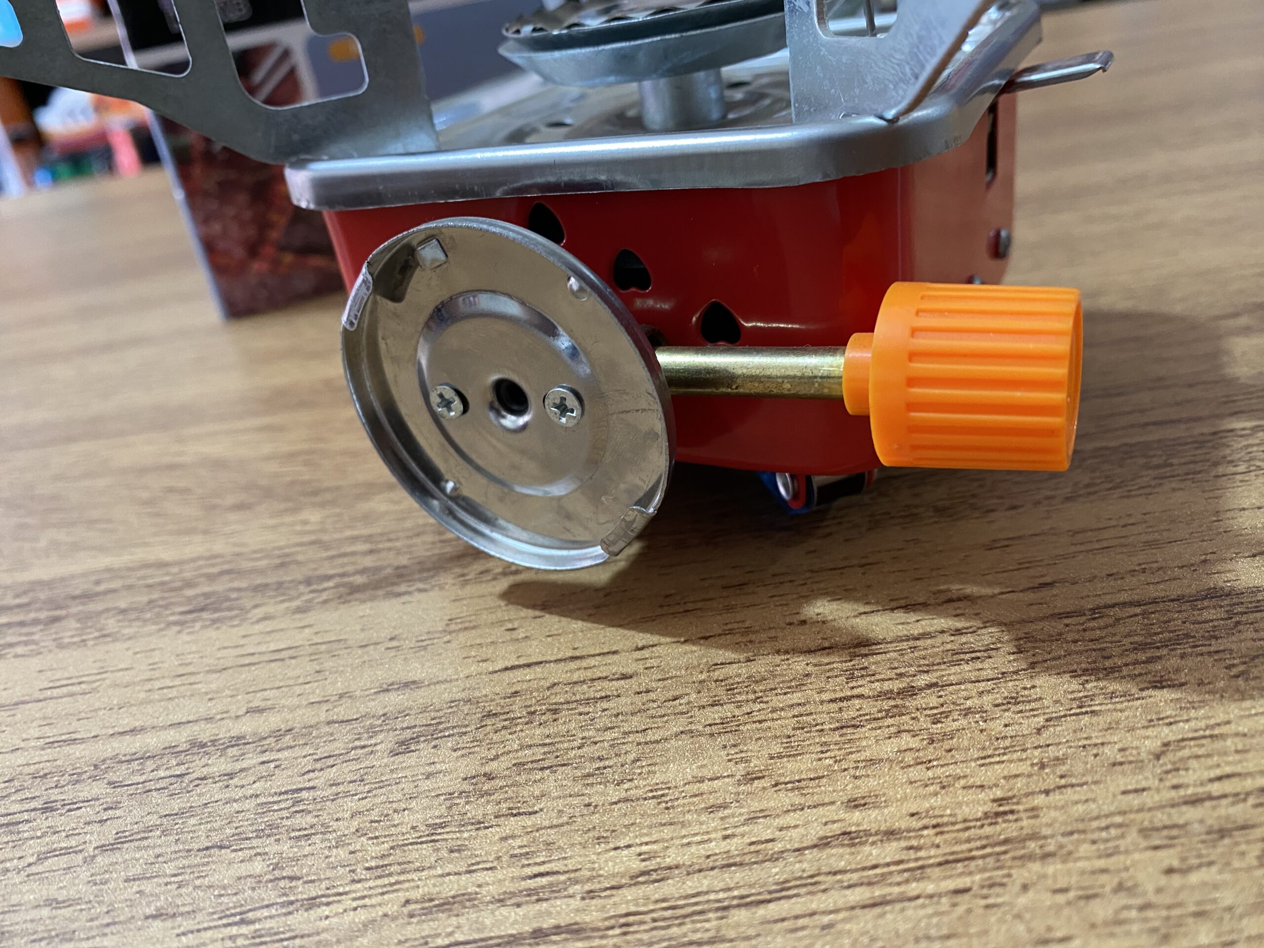 • Controle de Chama: Equipado com um botão giratório laranja que permite ajustar a intensidade do fogo com precisão.