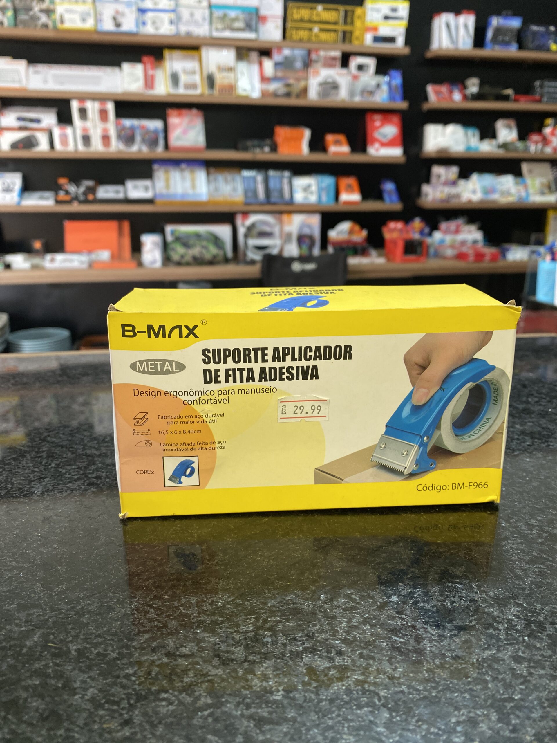 o aplicador de fita é compatível com rolos de fita com largura mínima de 40mm e largura máxima de 52mm.